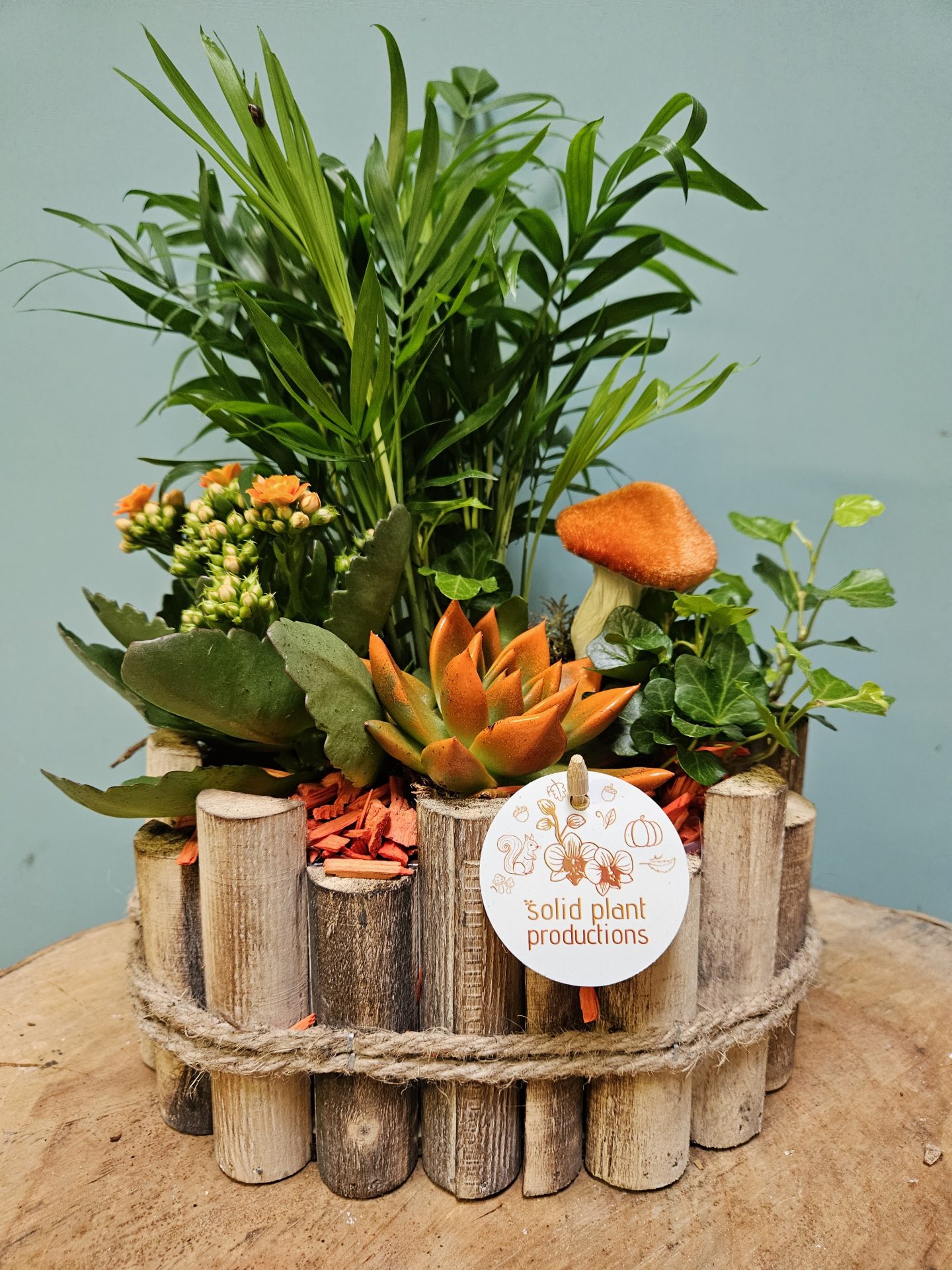 A gorgeous, seasonal, indoor plant arrangement (colour scheme of arrangements does vary and may be in oranges, reds or purples)